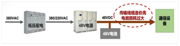 比如5G基站,由于AAU功耗增加,若依然采用-48V,電流更大,線損更大,傳輸距離更短,無法滿足一些AAU拉遠場景,只能更換更大線徑的線纜,但這會增加成本以及鐵塔的負重,為此將電壓適當提高,比如-57V,以降低建設成本,加快建設步伐。