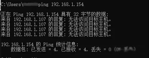 1、同網段ping不通,結果是“無法訪問目標主機”