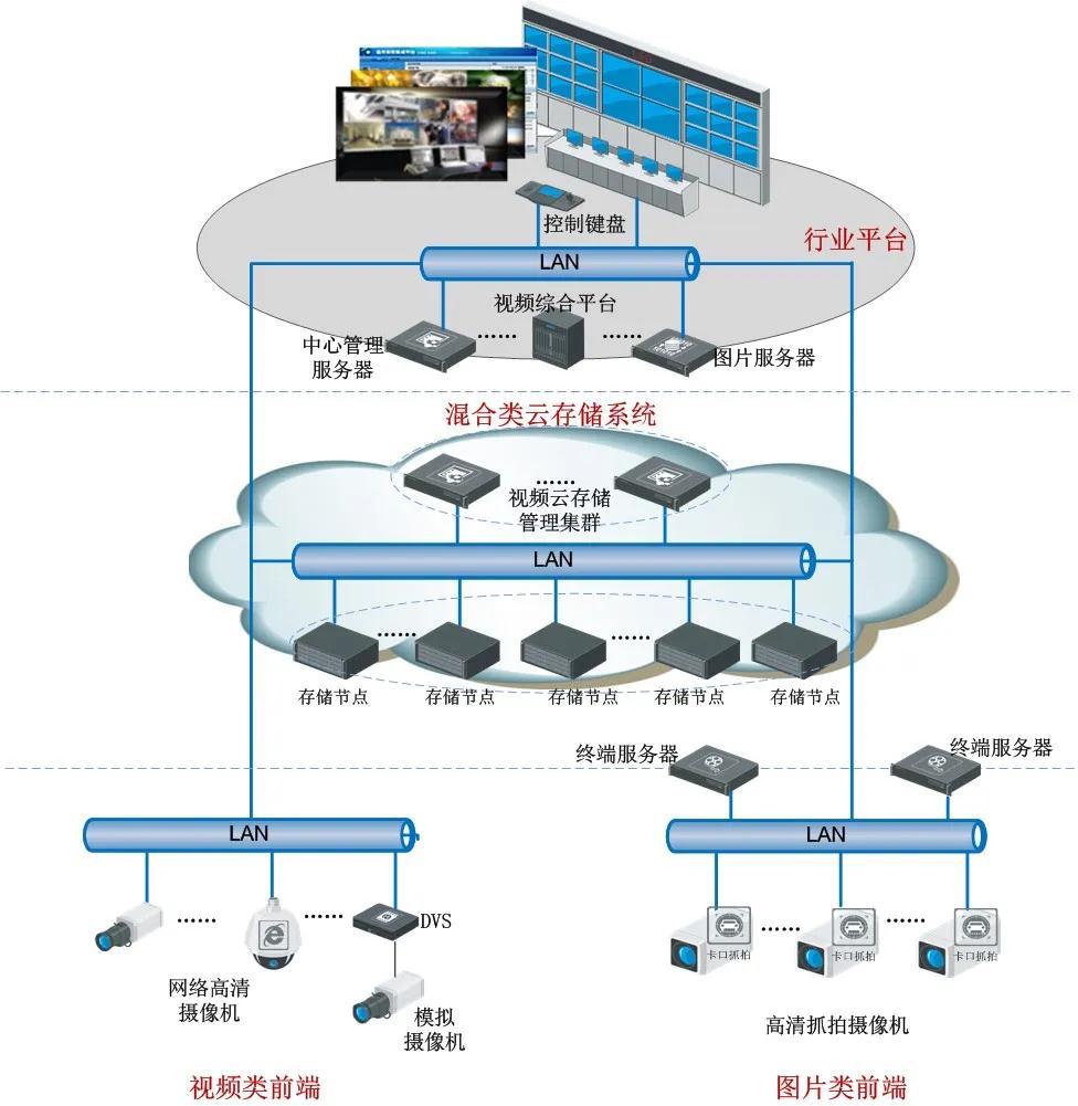 b)采用云存儲模式對實時視頻進行集中式存儲,實現存儲系統的高可靠、高性價比;