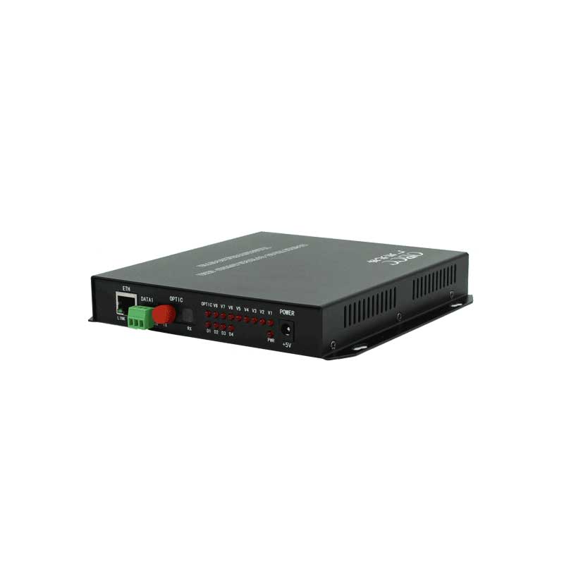 通過一芯光纖傳輸多路視頻(可選配多路單向或雙向RS485/422/232數據、單向或雙向音頻、單向或雙向開關量、以太網、電話、E1等信號)。視頻光端機采用全數字無壓縮技術,因此能支持任何高分辨率運動、靜止圖像無失真傳輸;克服了常規的模擬調頻、調相、調幅光端機多路信號同傳時交調干擾嚴重、容易受環境干擾影響、傳輸質量低劣、長期工作穩定性不高等缺點。所有的光、電接口均符合國際標準,有電磁兼容設計,防雷擊、防靜電設計,適用于各種復雜惡劣的工作環境,具有極高的穩定性和可靠性。