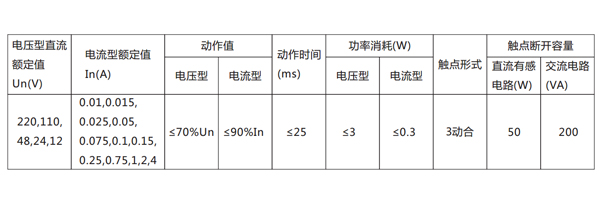 三、DX-8E信號(hào)繼電器的參數(shù)