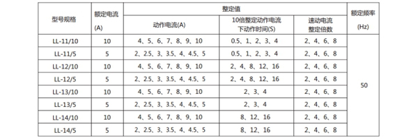 三、LL-14A過流繼電器的技術(shù)數(shù)據(jù)