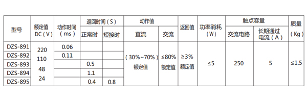 DZS-894/420延時(shí)中間繼電器主要技術(shù)數(shù)據(jù)見表