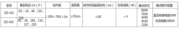 DZ-432/8040中間繼電器主要技術數據見表。