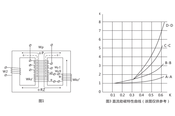 3.繼電器的直流助磁特性曲線(如圖3)E=f(K)應能進行分段調整;